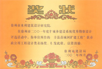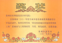 《豐縣苗城河擴(kuò)建工程》市設(shè)計(jì)表揚(yáng)獎(2002)