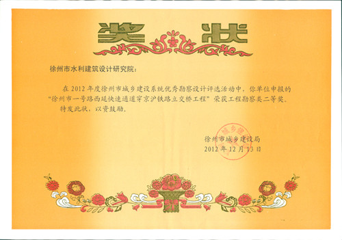 “徐州市云龍湖湖中路堤改橋工程”榮獲工程勘察類三等獎